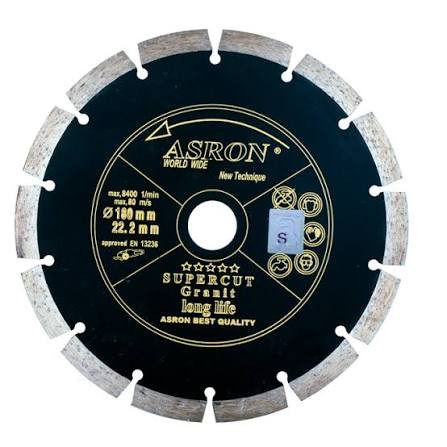 صفحه خشکه بر گرانیت آسرون مشکی (ASRON) با قطر 180 میلی متر و ضخامت 2 میلی متری یکی از محصولات با کیفیت و کاربردی برای برش انواع سنگها و گرانیتهای سخت است .