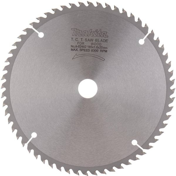 تیغ اره گردبر 60 دندانه چوب 185mm - A-82482 ماکیتا ، قطر خارجی 185 میلیمتر، قطر سوراخ میانی 20 میلیمتر، ضخامت 1.6 میلیمتر با حداکثر سرعت 8300 دور در دو سایز 185 و 235 میلیمتر یکی از با کیفیتترین تولیدات این کمپانی است